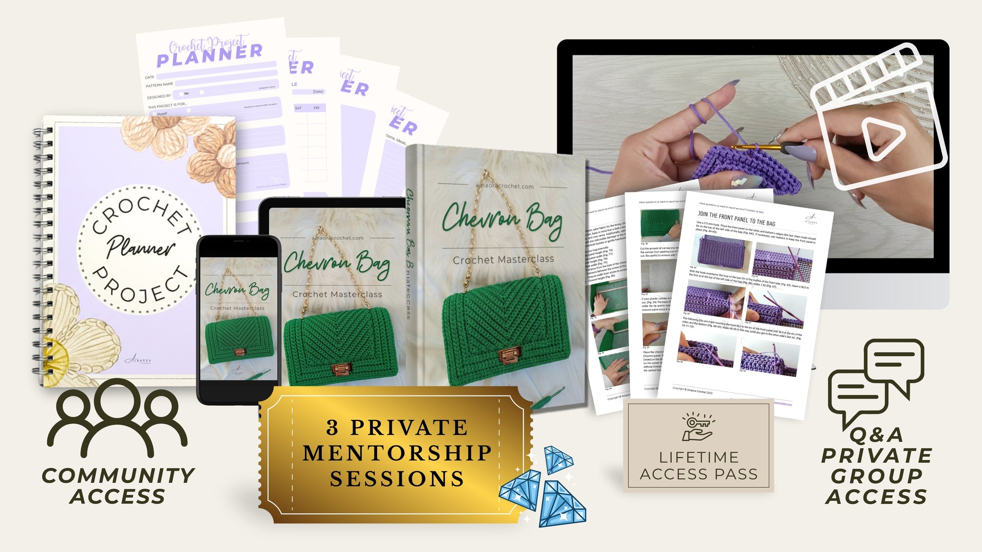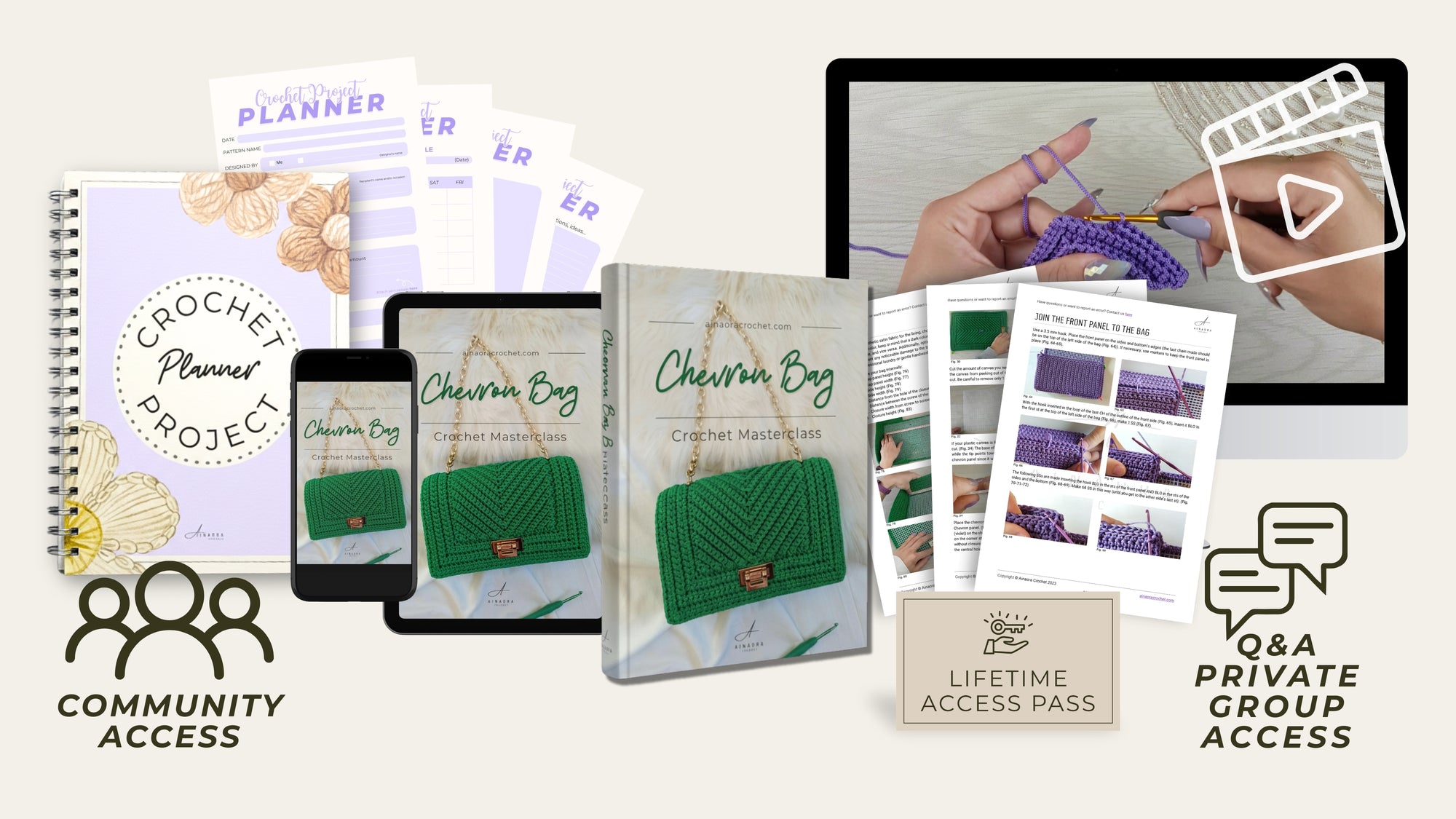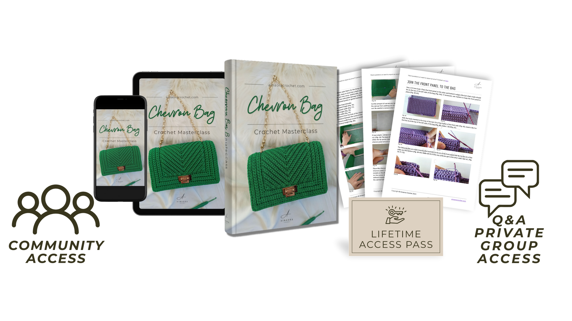 P.P.S. Let's be real: If you pass on this offer, in a week from today will you have your own Chevron Bag started out or not? You'll still wish and want it, and you'll keep struggling with crochet patterns and messy tutorials. Face it. Most of what you need is clear instructions and guidance. Get this masterclass now to start immediately crocheting with confidence! Wouldn't you like to be the crochet hero of the group sharing your newly made high-end crochet bag?